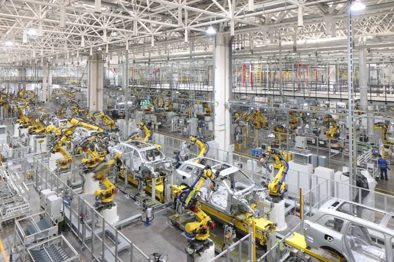 在赛力斯超级工厂里,机械臂不停舞动、运输机器人来回穿梭,一辆辆问界M9正在进行下线前最后的部件组装。这座超级工厂内,1600多台智能终端、3000多台机器人协同运作,实现了焊接过程自动化率100%、喷涂自动化率100%、全自动智能伺服压机线%。