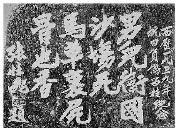 提到桂林抗战石刻,最为人知的当属普陀山曾公岩的“男儿卫国沙场死,马革裹尸骨也香”。该诗句借用汉代名将马援“马革裹尸”典故,抒发了作者矢志抗日、保家卫国的决心。纵观作者张壮飞的一生,早年加入同盟会参加武昌起义,后随冯玉祥参加北伐。1933年加入察哈尔民众抗日同盟军,曾被蒋介石政府错误判刑,出狱后迅速投身抗战。1938年于江西九江被日机炸伤,转至桂林养伤,留下了这一掷地有声的誓言。张壮飞伤愈后立即重返前线。抗战胜利后退役回乡,掩护地下组织的活动,为解放事业作出了贡献。新中国成立后,张壮飞被推选为安徽省首届政协委员,积极投身社会主义建设。从他的人生历程来看,这一誓言反映的爱国主义内核,是经得起时间检验的。“男儿卫国沙场死,马革裹尸骨也香”,见证了中国人民的铁骨丹心,象征着伟大的抗战精神,并成为桂林抗战文化城永远嘹亮的号角。