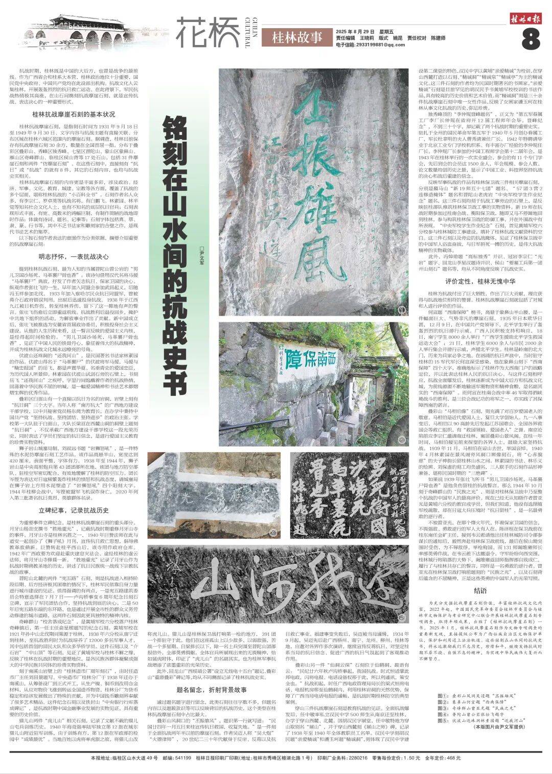 为充分发掘抗战摩崖石刻价值,丰富桂林抗战文化内容,2022年起,中国革命委员会桂林市委员会与桂林市文物保护与考古研究中心联合开展桂林抗战摩崖石刻专项调查,取得丰硕成果,出版了《桂林抗战摩崖石刻》一书。2025年1月,桂林抗战摩崖石刻作为文物专项调查的重要新发现,直接提级公布为广西壮族自治区文物保护单位,保护和利用迈上法治轨道。这些铭刻在山水间的抗战史书,将永远激励我们不忘历史,珍惜和平,继续发扬抗战时期不屈不挠、自强不息的精神,为实现中华民族伟大复兴而不懈努力。返回搜狐,查看更多